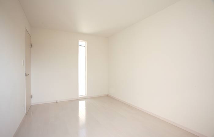 採光性の高いリビングルームはとてもやわらかな白をまとい、さらに天井を高くとっていることで