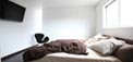 室内は白と黒の配色で統一されており、モダンで落ち着いた雰囲気になっています。