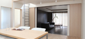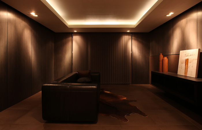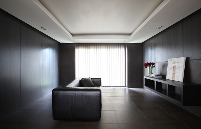 黒で藤一された室内は落ち着きと品格をもった空間となっており、